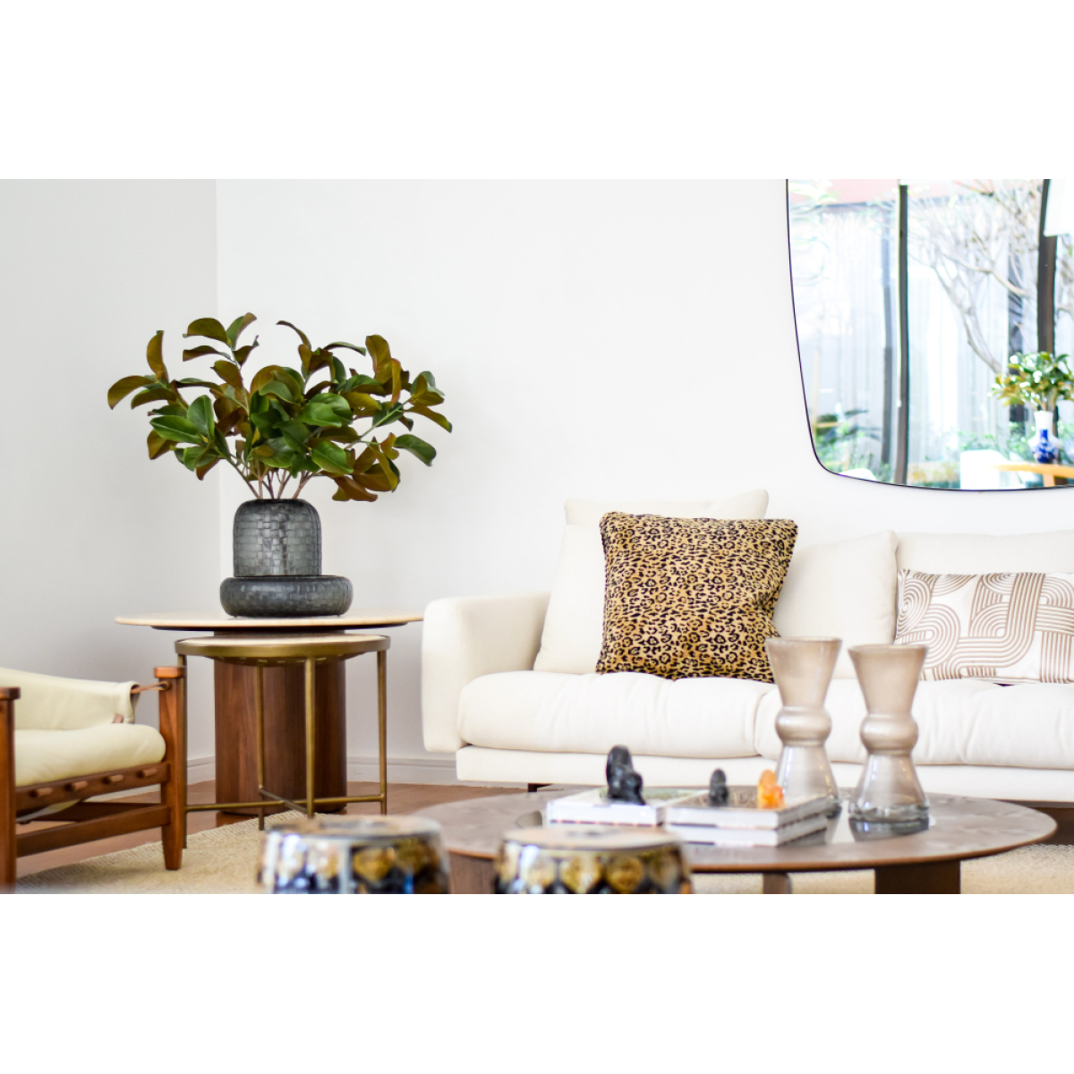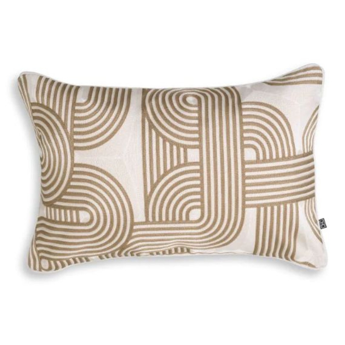 Esta almofada apresenta um design moderno e sofisticado com estampa geométrica em tons de bege sobre fundo branco. As linhas curvas e paralelas formam padrões simétricos que remetem ao estilo retrô com um toque contemporâneo. O formato retangular oferece versatilidade na decoração, sendo ideal para compor sofás, poltronas ou camas com um ar elegante e despojado. Confeccionada com tecido 100% algodão, ela une estilo e conforto em um único item decorativo.