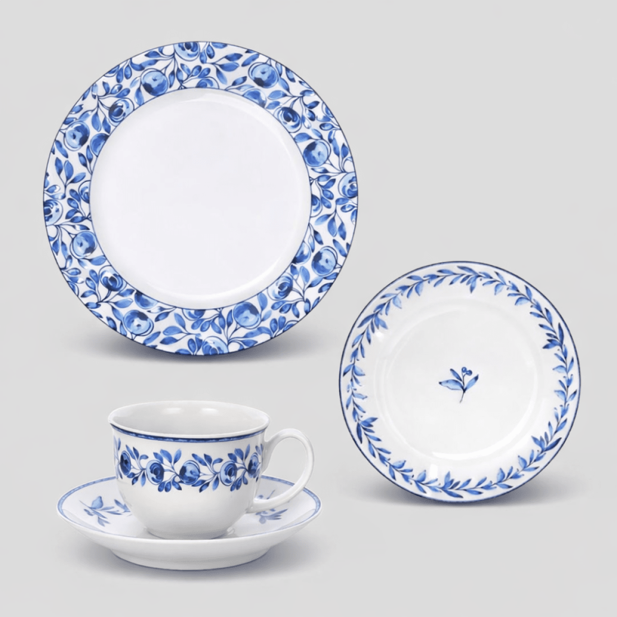 06 Pratos Rasos; 06 Pratos Sobremesa; 06 Xícaras Café