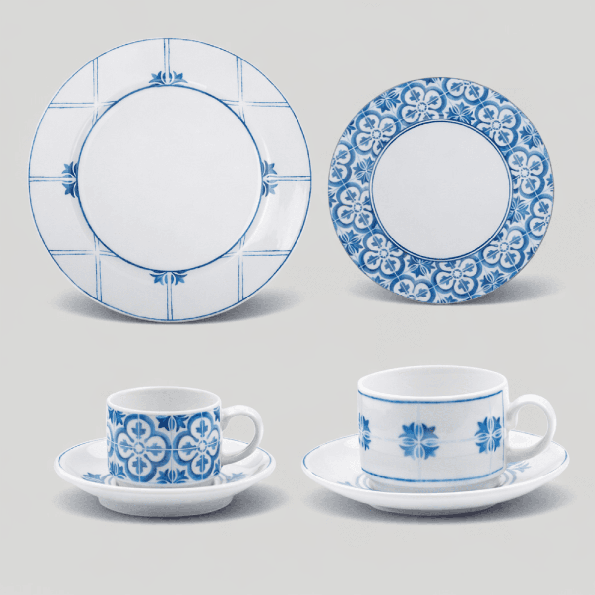 A coleção Azulejos, criada pela Matisse Casa em parceria com a tradicional Vista Alegre, celebra um dos símbolos mais marcantes da identidade portuguesa. Os azulejos, presentes há séculos na arquitetura de Portugal, contam histórias, preservam memórias e refletem a sensibilidade estética do país. Sua origem, remonta ao mundo árabe, que introduziu na Península Ibérica as técnicas de cerâmica vidrada mas, foi no século XVII, com o contato entre Portugal e as faianças de Delft, que a azulejaria portuguesa alcançou seu grande apogeu. A coleção Azulejos celebra essa herança, unindo tradição e contemporaneidade, e refletindo a excelência artesanal da Vista Alegre em diálogo com o olhar sofisticado da Matisse Casa. Aparelho de Jantar Azulejos 18 Peças: 6 prato raso; 6 prato sobremesa; 6 xícara de café; 6 xícara de chá