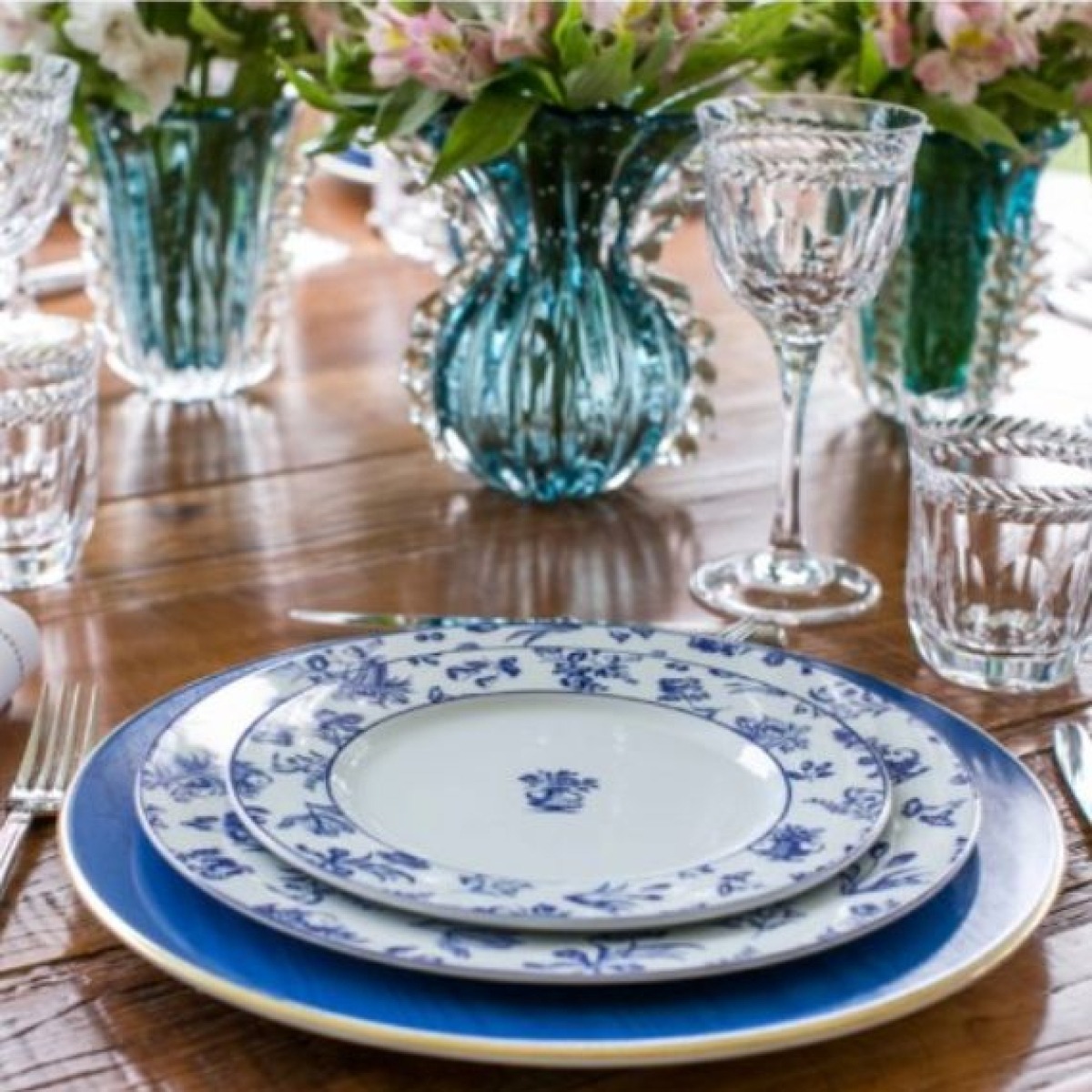 Decorado inteiramente em tons de azul, Chintz Azul é um serviço de mesa versátil com traços tradicionais que se adaptam a diversos ambientes e ocasiões.