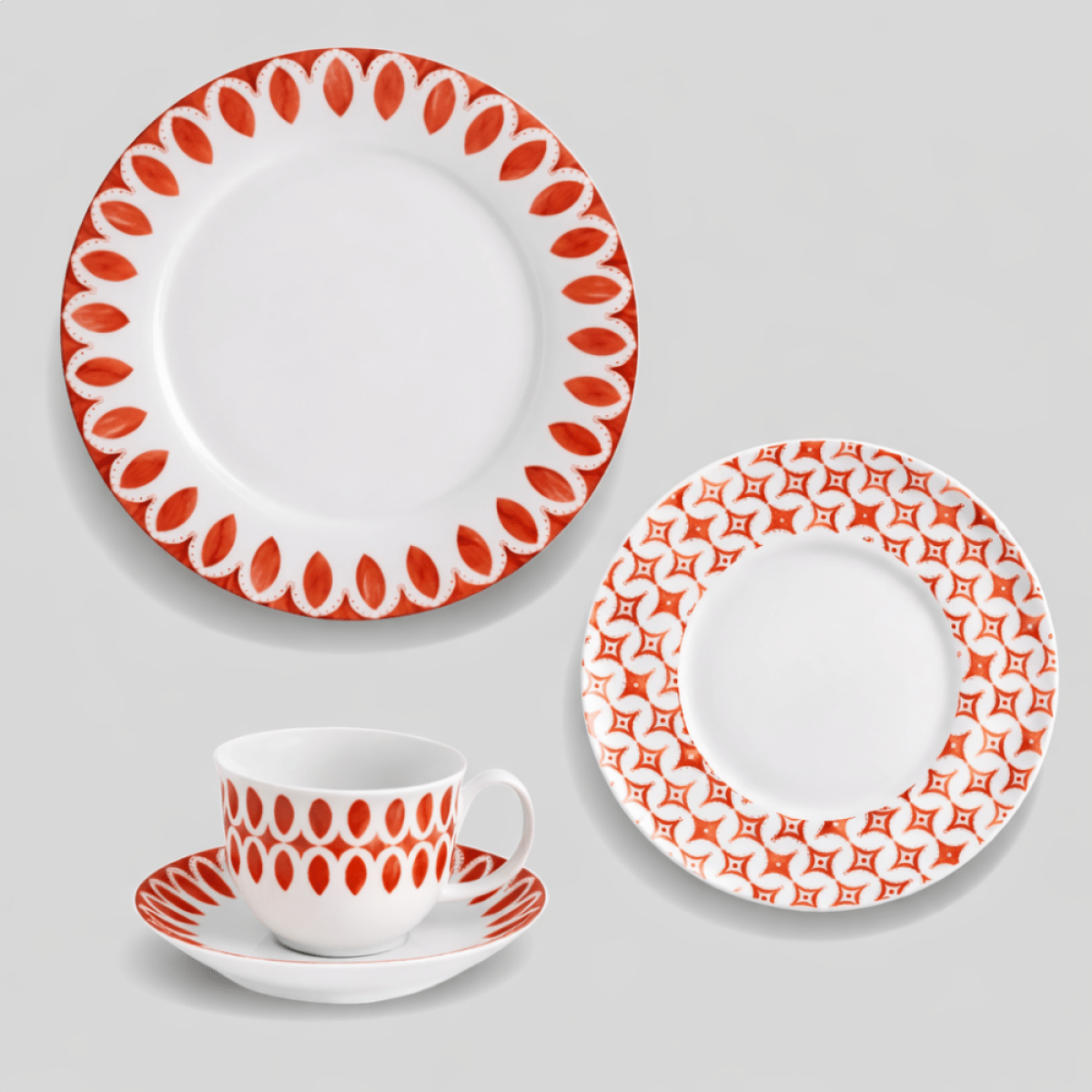 06 Pratos Rasos; 06 Pratos Sobremesa; 06 Xícaras de Café