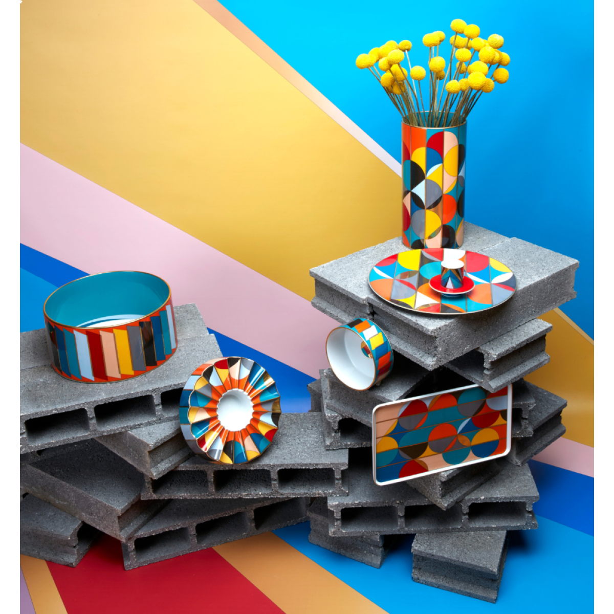 A coleção Futurismo faz uma releitura contemporânea do movimento precursor de todos os modernismos, celebrando o progresso e marcando um período de reinvenção das linguagens artísticas. Aqui se encontram as cores vibrantes e contrastantes, as formas geométricas repletas de linhas oblíquas, círculos e ângulos divergentes, delimitadas por linhas de força, criando uma ideia de movimento vigoroso. A velocidade que os futuristas amavam encontra assim nova expressão numa linha elegante e intemporal, plena de dinamismo e expressividade.