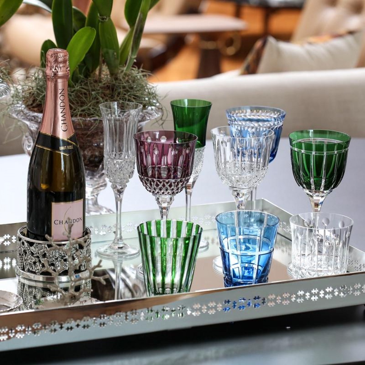 Bandeja de prata modelo Cross com galeria trabalhada e fundo de espelho. St. James.