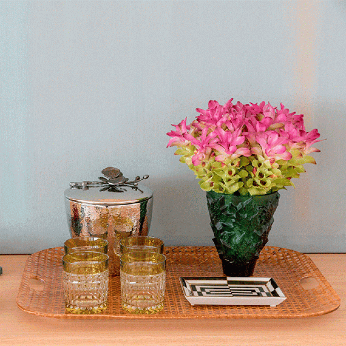 Bandeja Spisani Firenze Rattan Acrílico