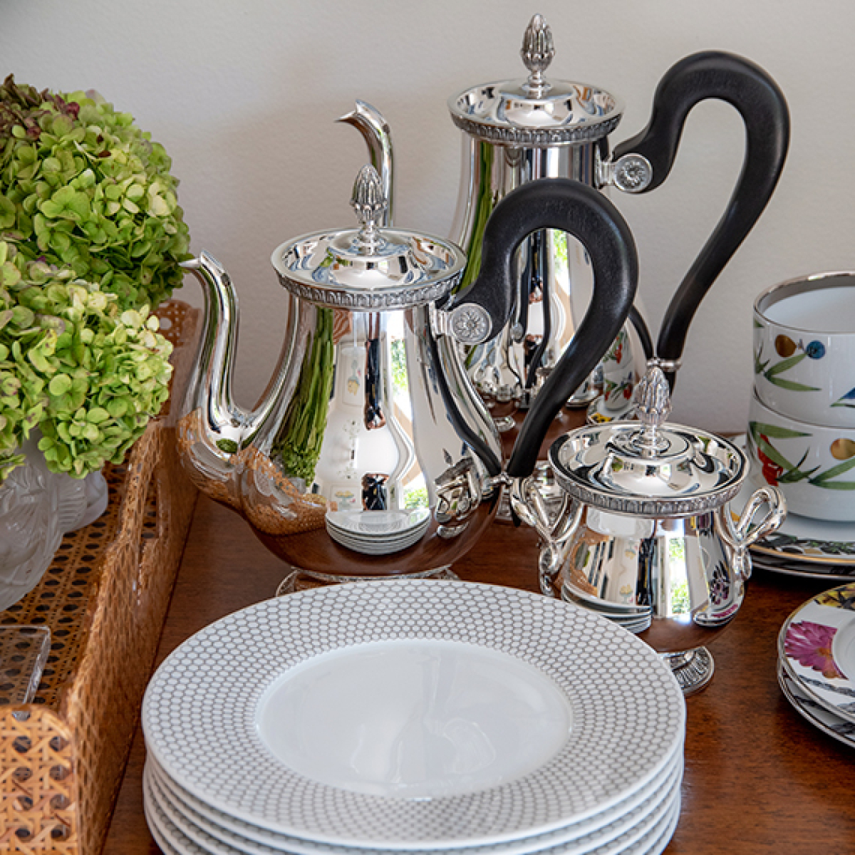 O bule de chá Malmaison alia requinte e sofisticação ao serviço de chá e à sua mesa. Malmaison, um dos principais modelos da Christofle, é um exemplo do estilo Império, com seu friso de folhas de palmeira e lótus. Essa coleção homenageia o Château de la Malmaison, residência favorita de Napoleão e da imperatriz Josephine. Cada peça é meticulosamente elaborada, refletindo requinte e sofisticação.