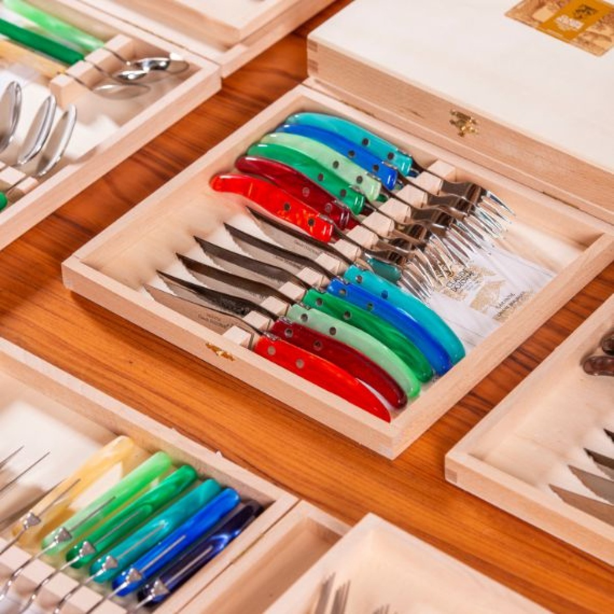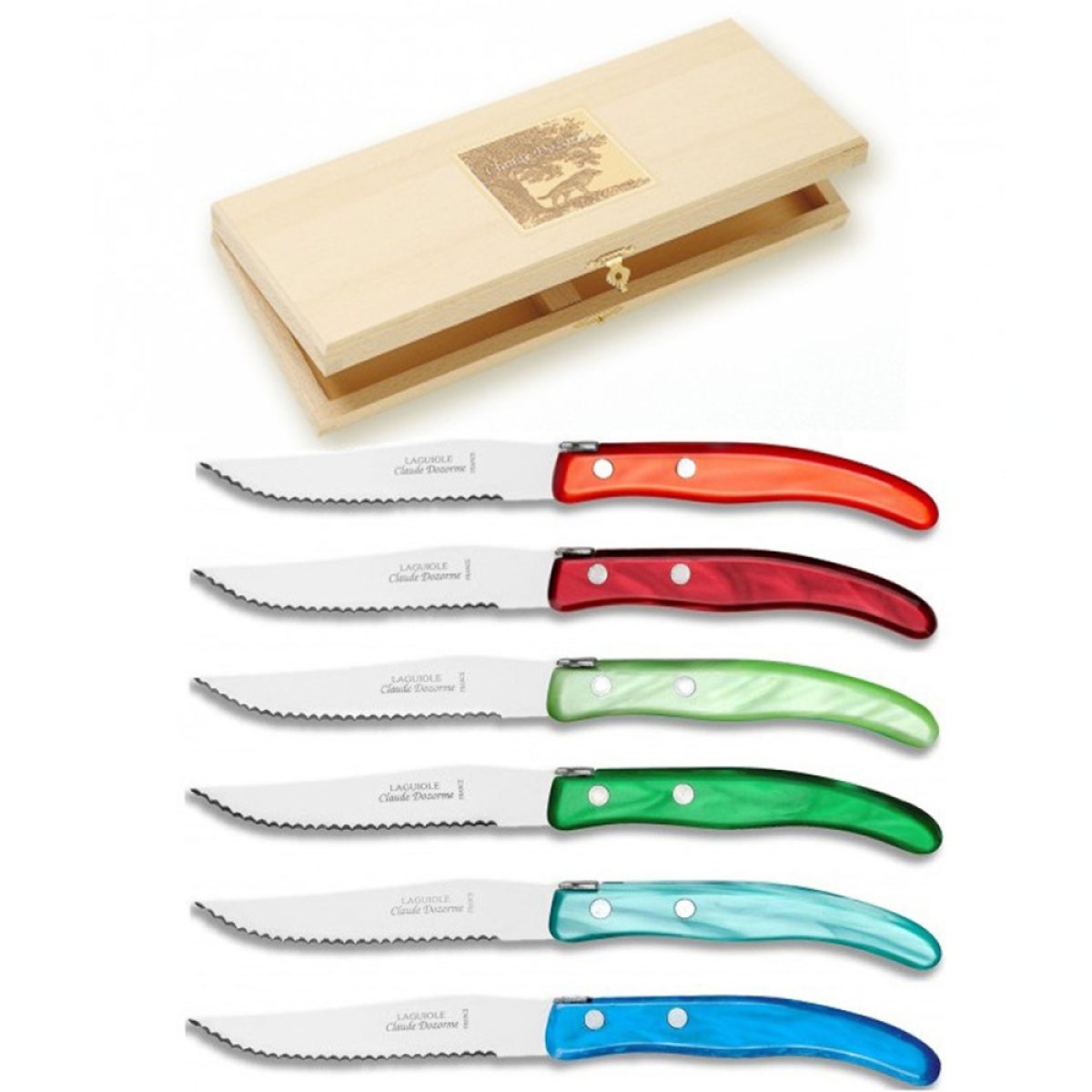 Caixa com 6 Facas de Mesa Claude Dozorme Laguiole Coloridas
