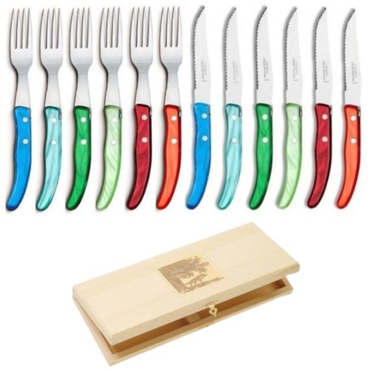 Caixa com 6 Facas e 6 Garfos Claude Dozorme Laguiole Coloridas