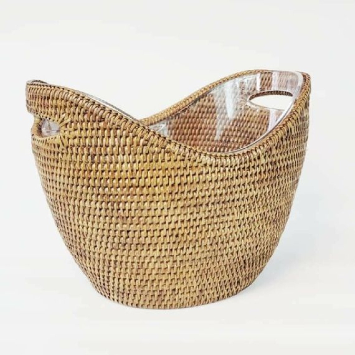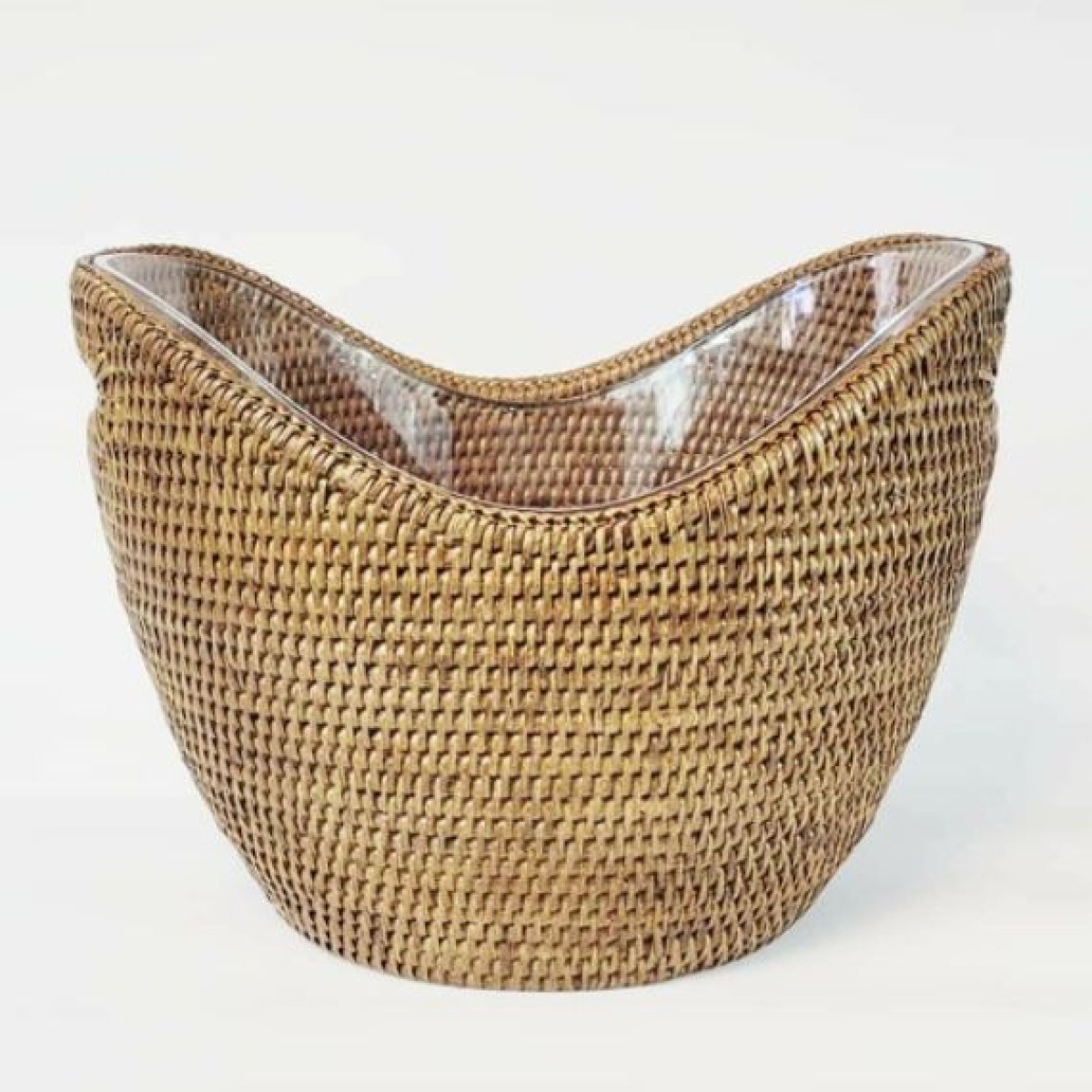 A champanheira CHEER tem sua parte interna em acrílico, o que confere leveza e transparência ao seu revestimento que é o rattan. Seu design é elegante e fica muito bem em qualquer ambiente, interno ou externo.