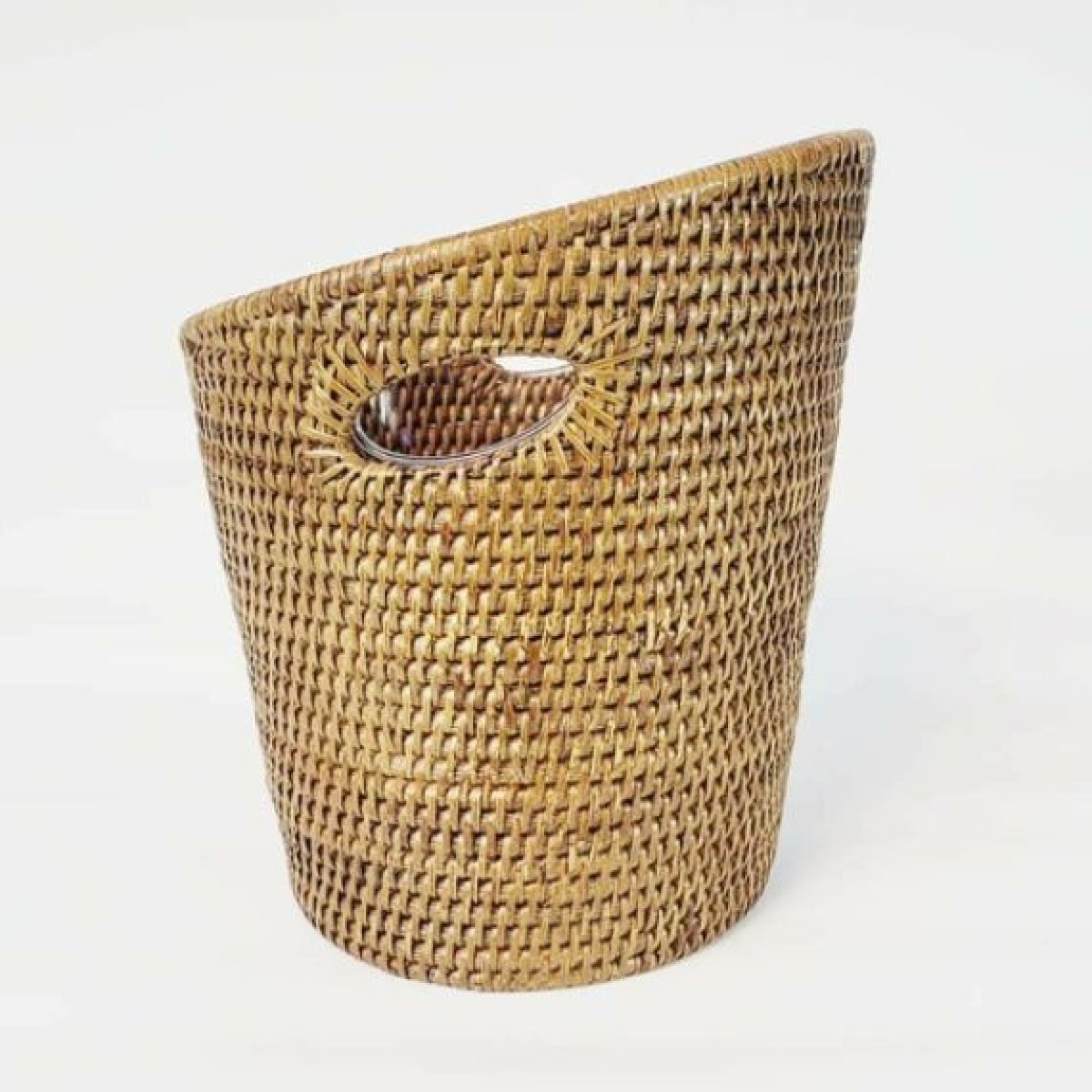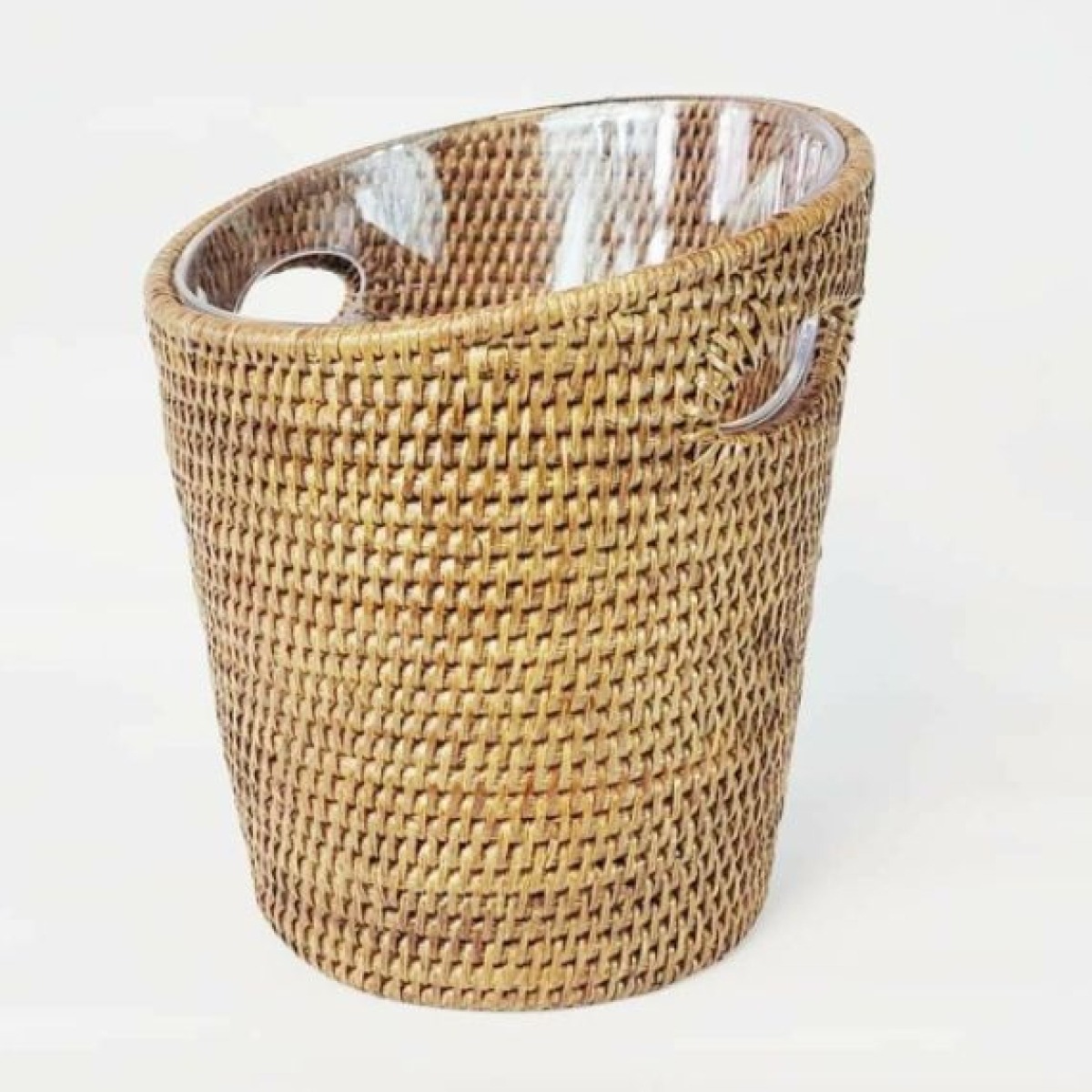 A champanheira CHEER tem sua parte interna em acrílico, o que confere leveza e transparência ao seu revestimento que é o rattan. Seu design é elegante e fica muito bem em qualquer ambiente, interno ou externo.