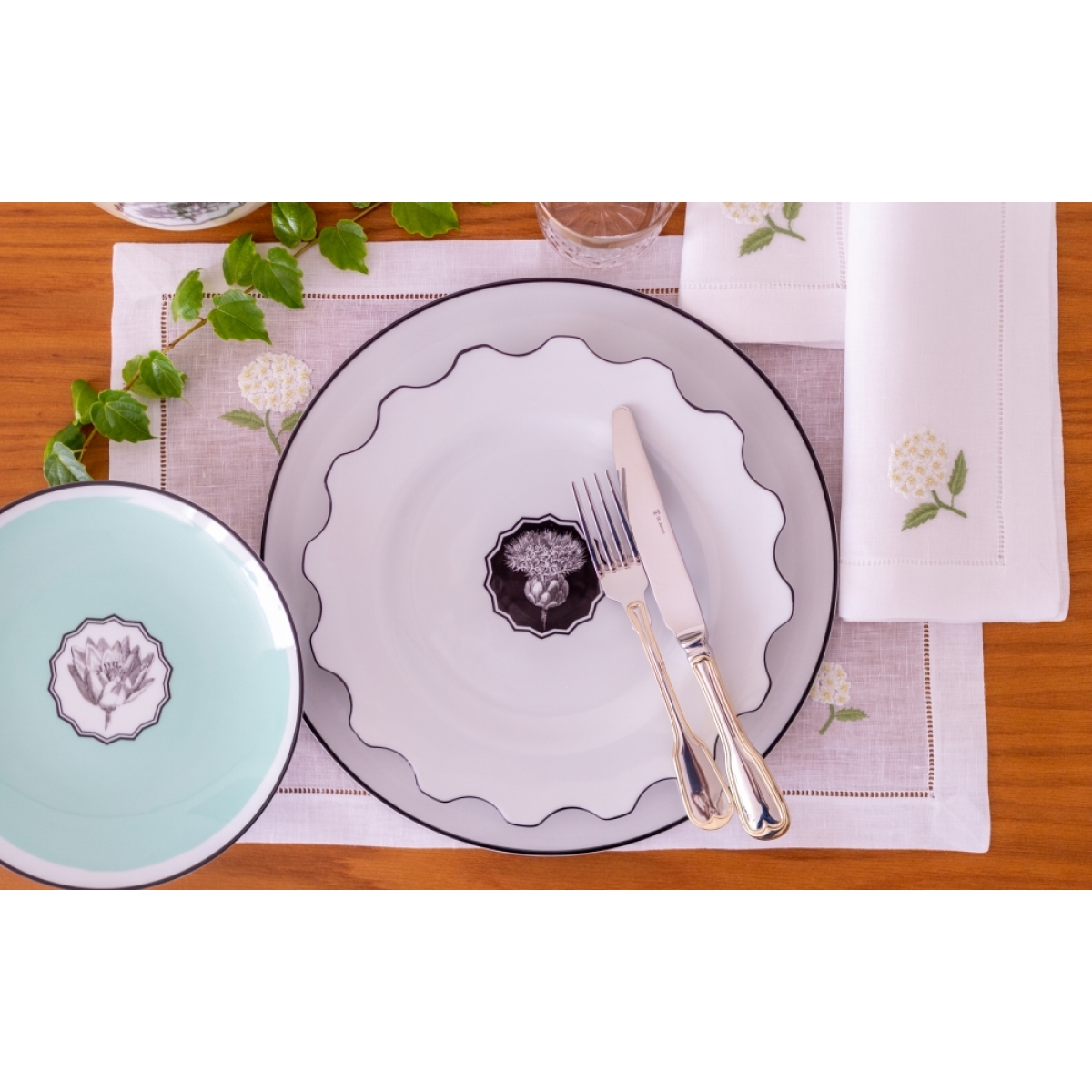 Jogo Americano Hortência Branca, 100% linho. Para compor sua mesa em grande estilo com o capricho e a riqueza de detalhes bordados à mão. Item especial para celebrar grandes momentos e dar um toque de cor, descontração e elegância para a sua produção.