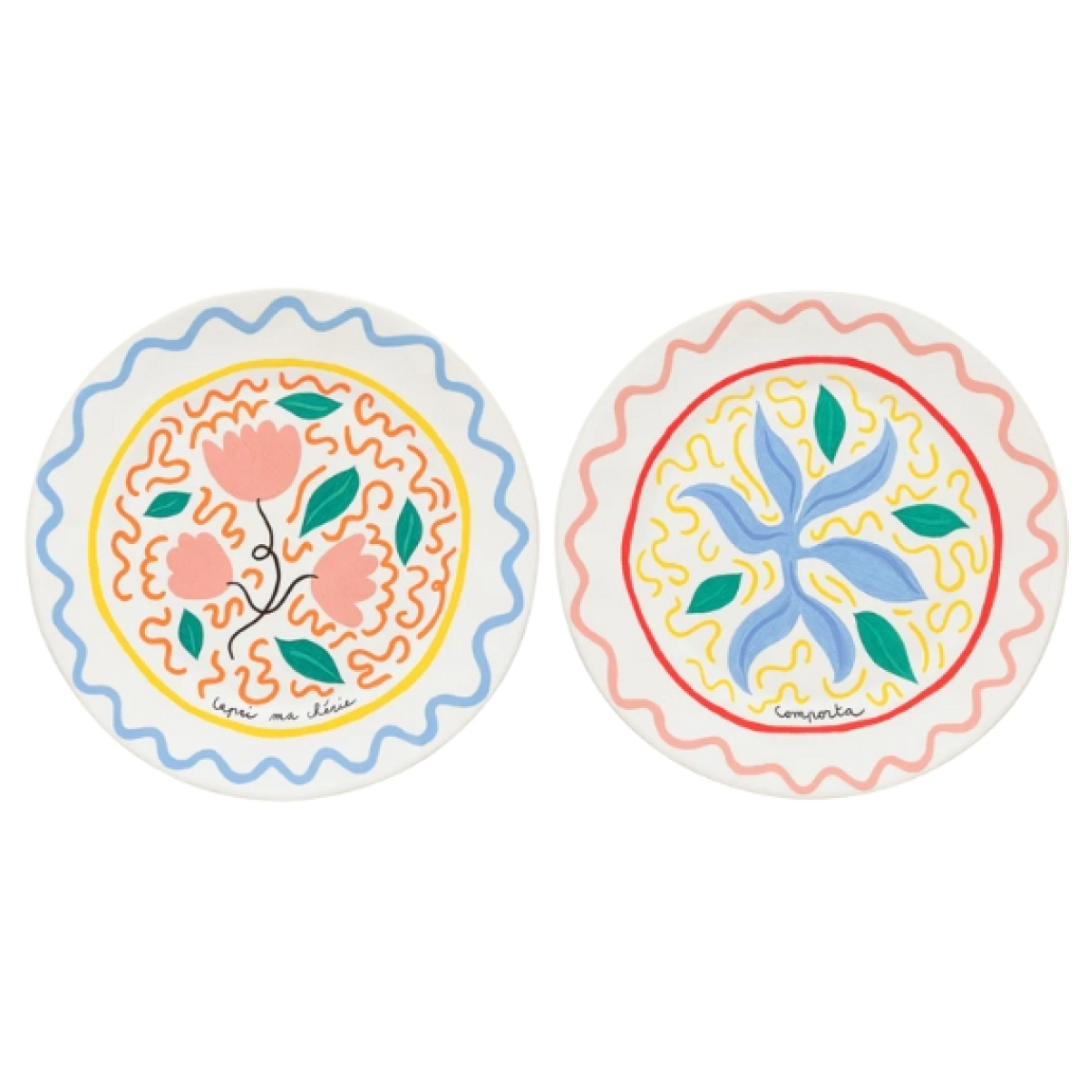 Conjunto 2 Pratos Raso Summer Bliss Costa Nova, em grés fino e fabricada em Portugal Capri Ma Chérie / Comporta