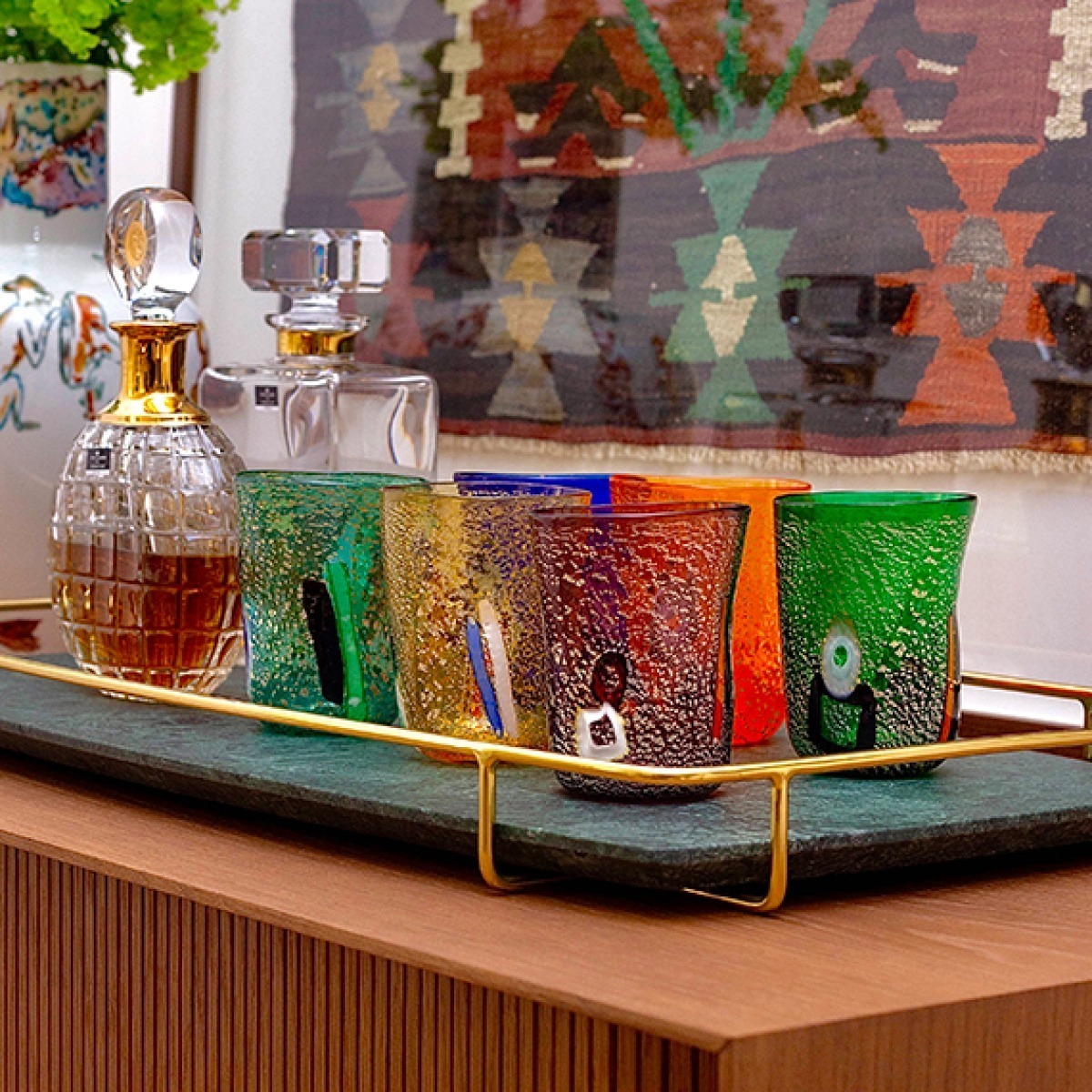 O modelo de Copo Goti di Murano Âmbar da Zafferano combina arte e funcionalidade, tornando-se ideal para quem deseja adicionar sofisticação à mesa ou ao bar.