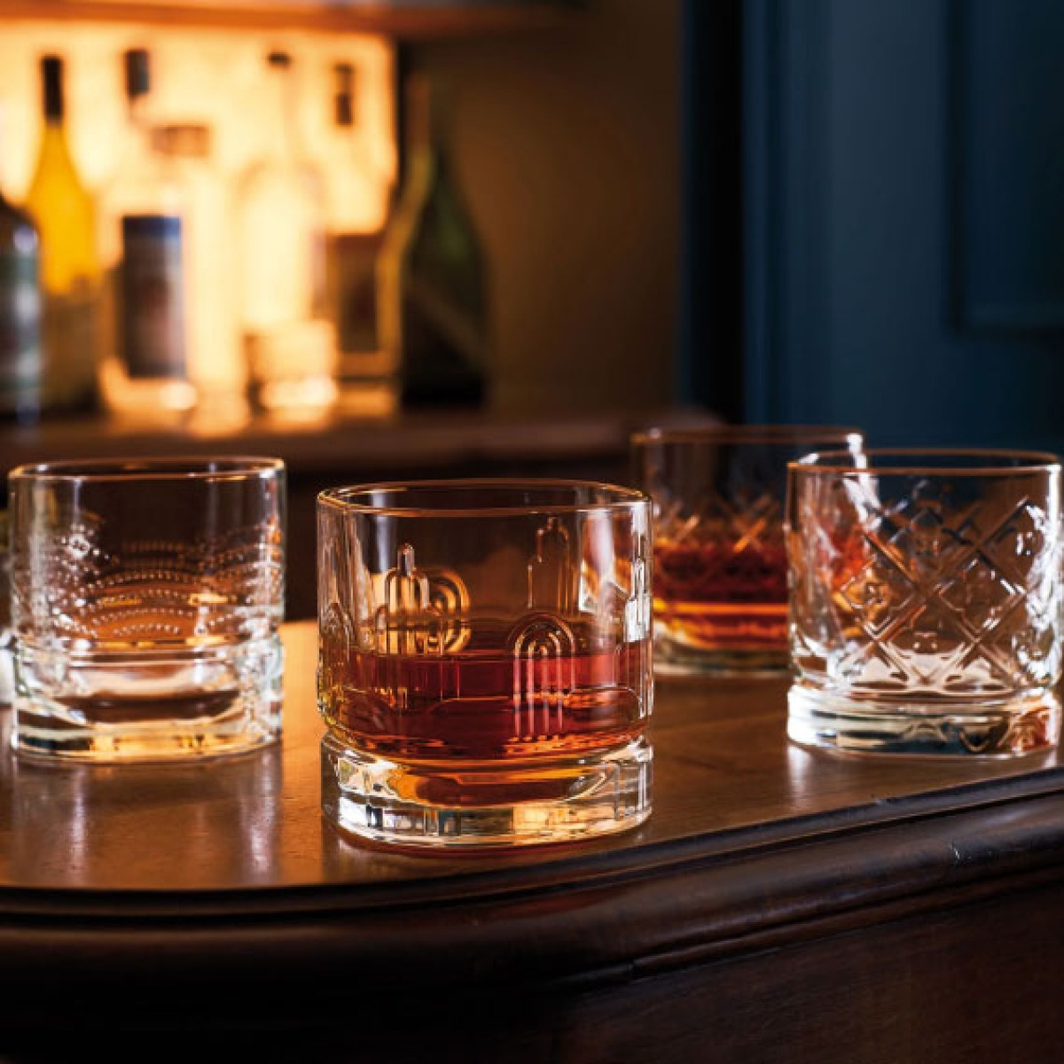 A sua forma quadrada com cantos suavemente arredondados é um destaque à parte, que expressa um caráter forte e elegante. Fabricado com com vidro de alta qualidade, o design e lapidação refinada desse copo criam efeitos luminosos únicos ao refletir a cor do whisky, tornando cada degustação ainda mais sofisticada.