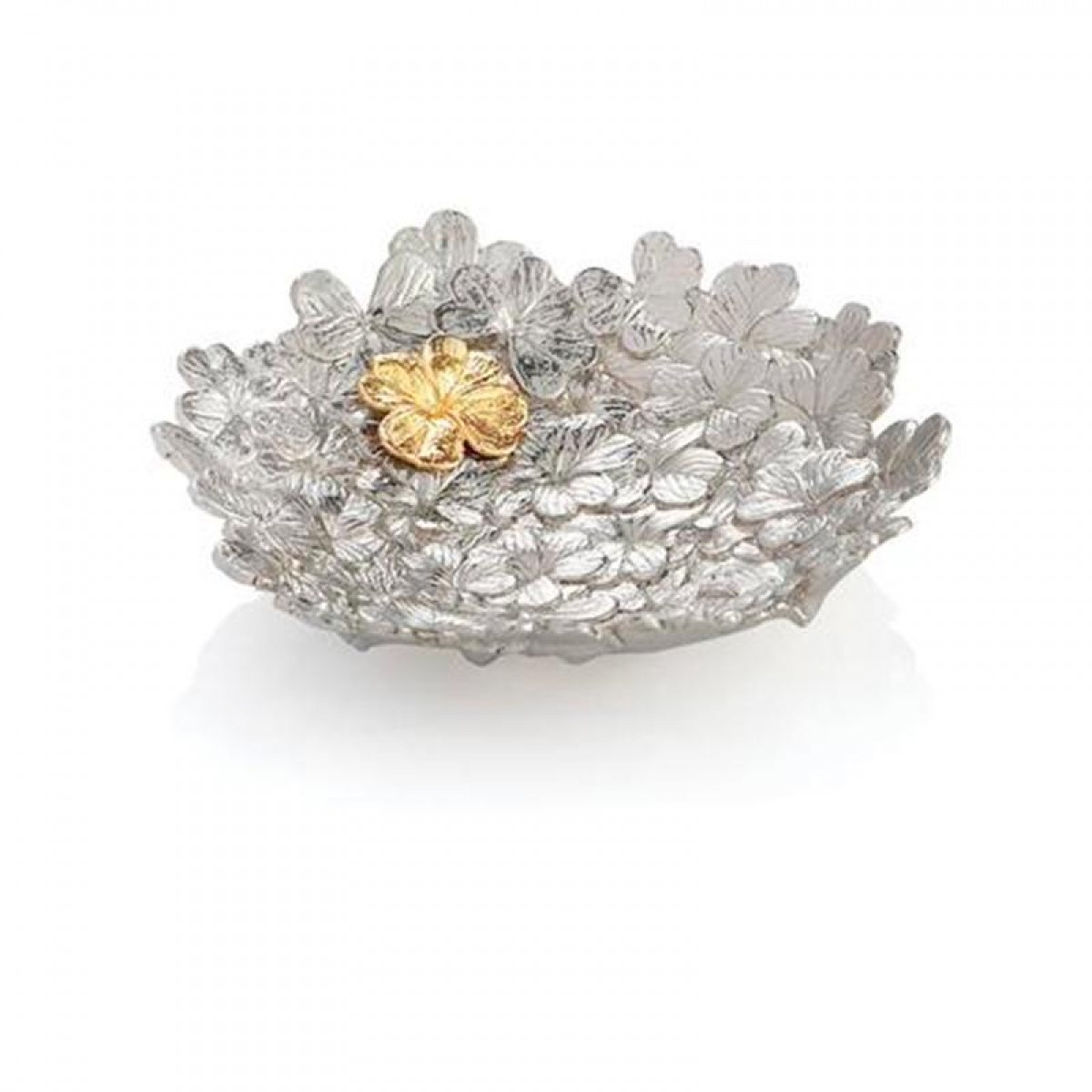 Enfeite trevos, de inox, do designer americano Michael Aram.