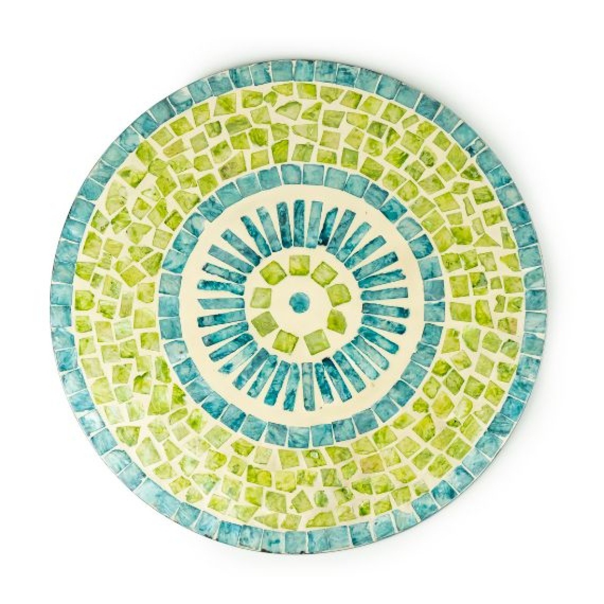 Jogo americano com mosaico em madrepérola. Produzido no Vietnã por artesãos habilidosos tornando cada peça única. Este jogo americano apresenta um design que lembra um mosaico, com padrões geométricos em tons de verde e azul. Ideal para ocasiões especiais ou para dar um toque sofisticado ao dia a dia.