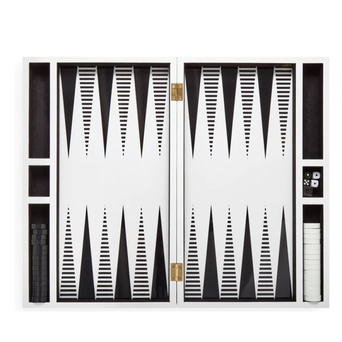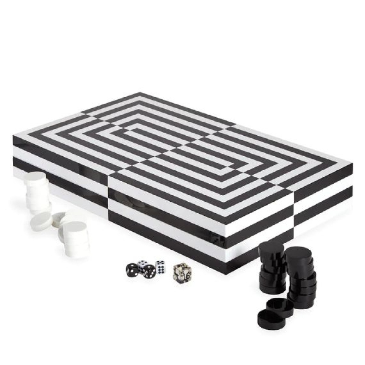 Lindíssima caixa de gamão em branco e preto inspirada na Op Art