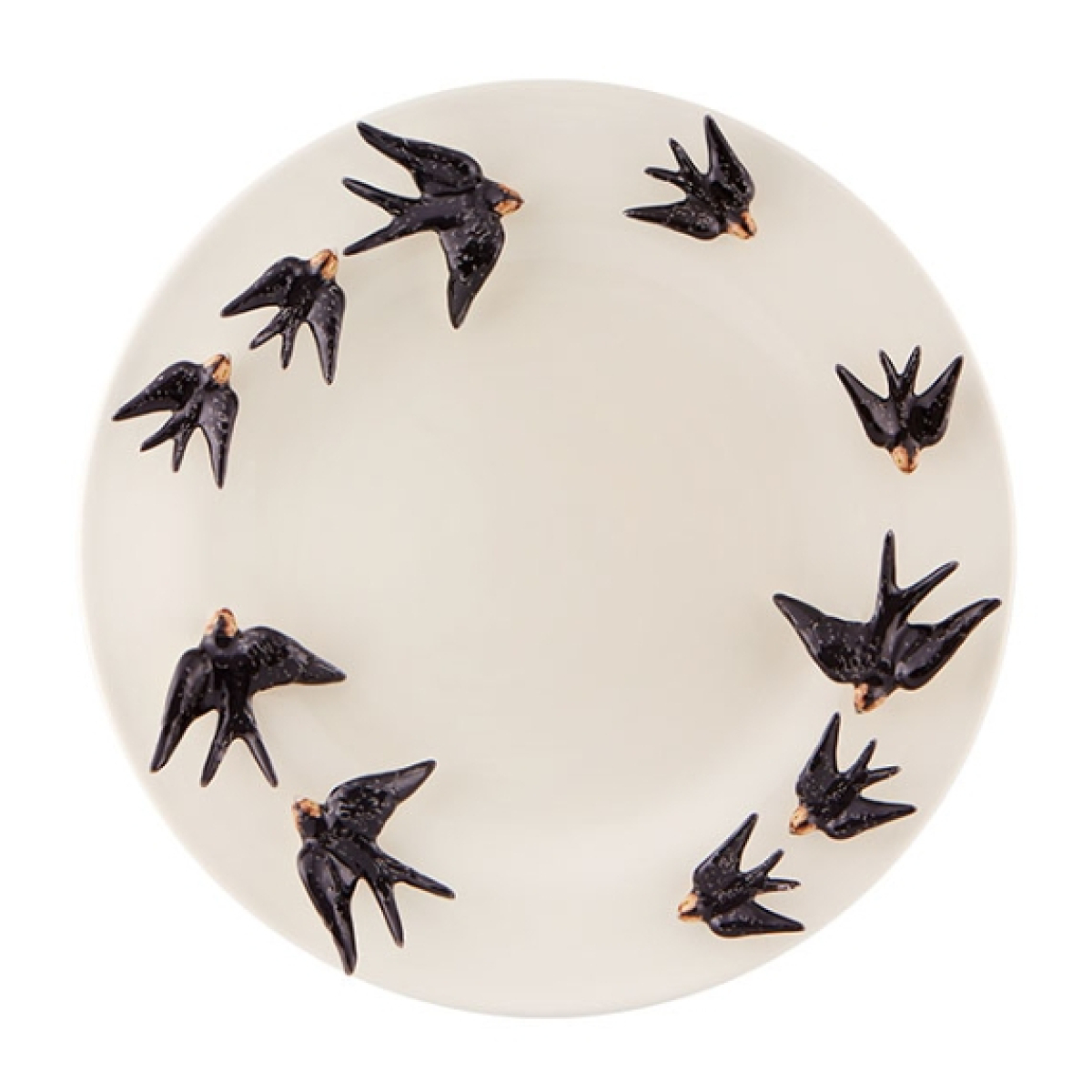 Prato com andorinhas Bordallo Pinheiro é uma peça icônica de cerâmica portuguesa, que apresenta as famosas andorinhas naturalistas da marca.