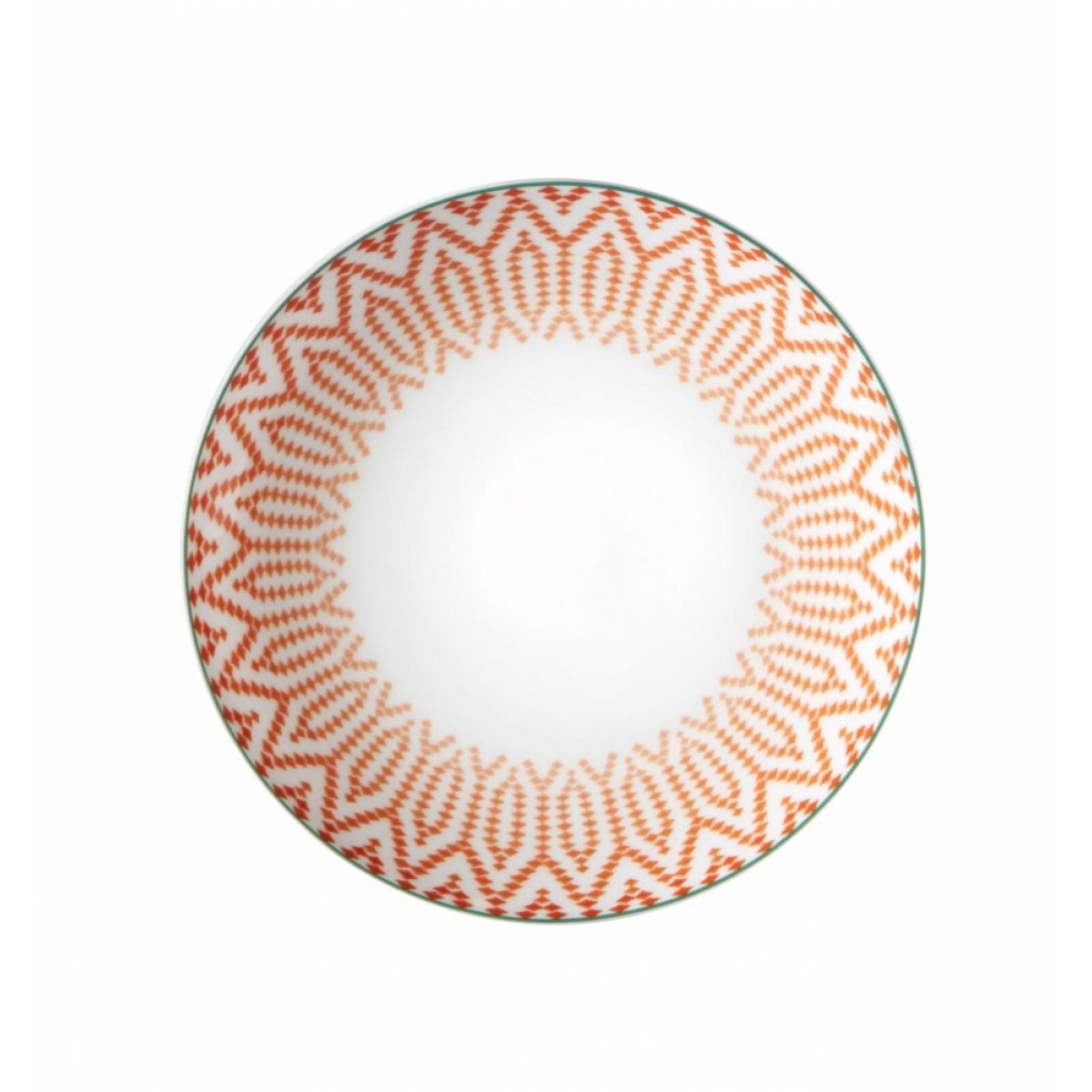 Prato Coupe Fiji. Leves motivos florais, estilizados com modernidade, aliados a elementos geométricos, levam-nos a viajar por paraísos tropicais.