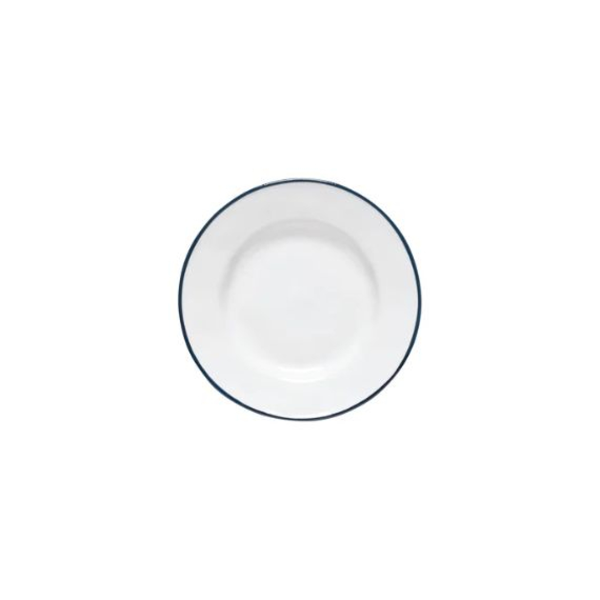Linha elegante e contemporânea, a coleção Beja acrescenta um look simultaneamente sofisticado e casual a qualquer mesa. Com linhas graciosas, todas as peças da coleção apresentam um rebordo de cor azul marinho. Grés fino. Fabricado em Portugal.