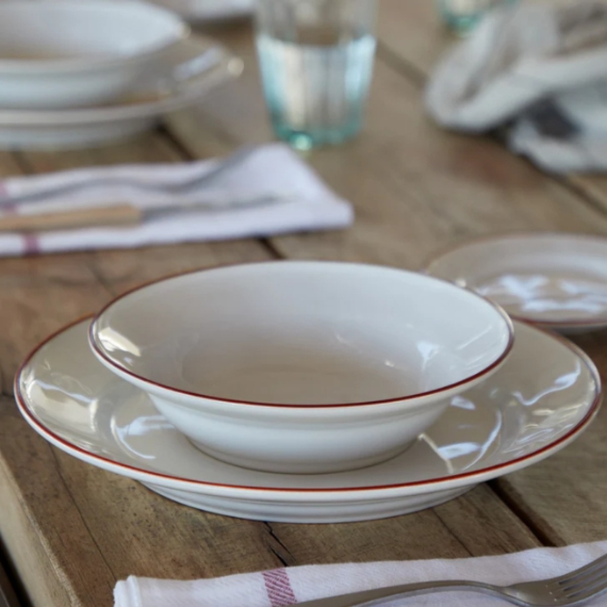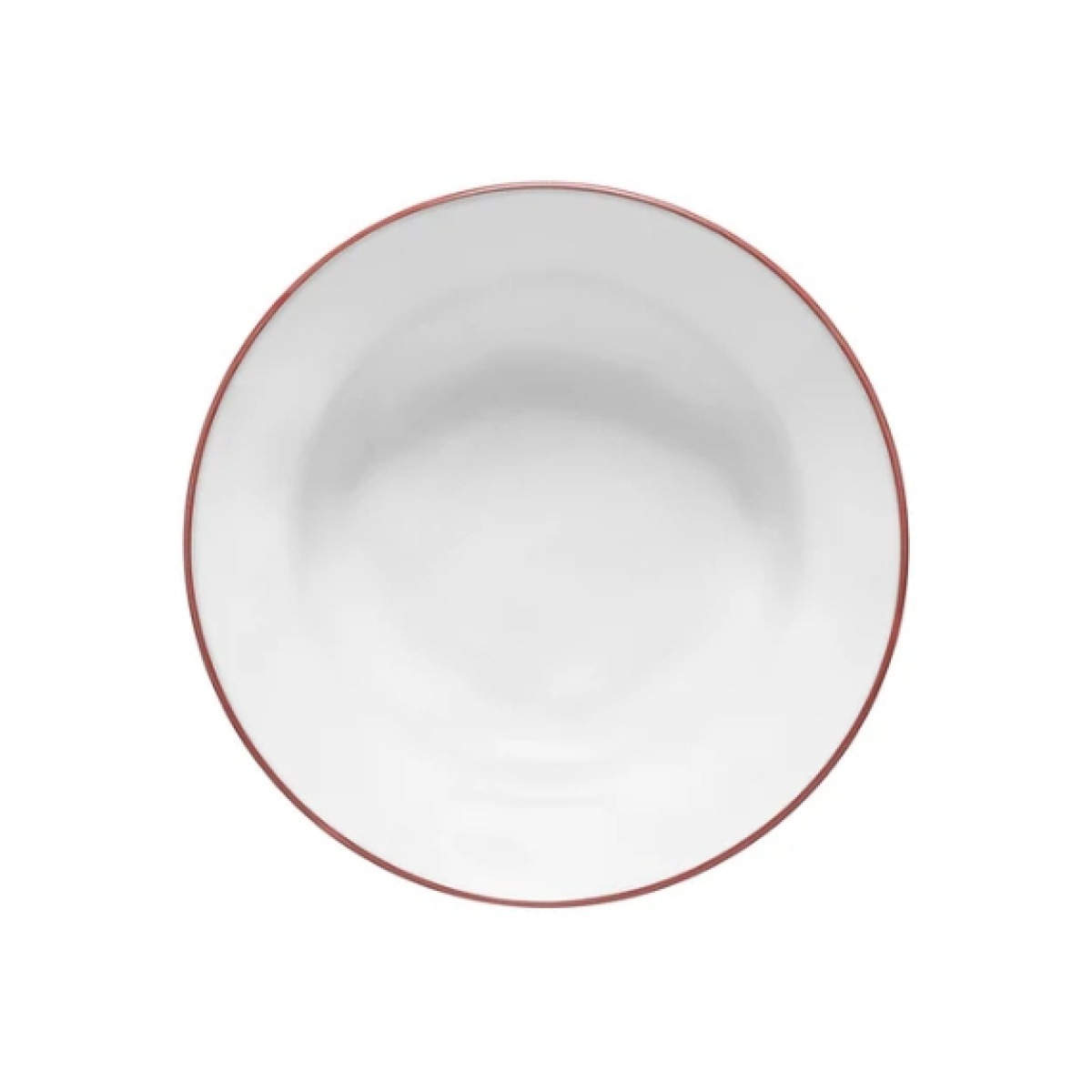 Linha elegante e contemporânea, a coleção Beja acrescenta um look simultaneamente sofisticado e casual a qualquer mesa. Com linhas graciosas, todas as peças da coleção apresentam um rebordo de cor azul marinho. Grés fino. Fabricado em Portugal.