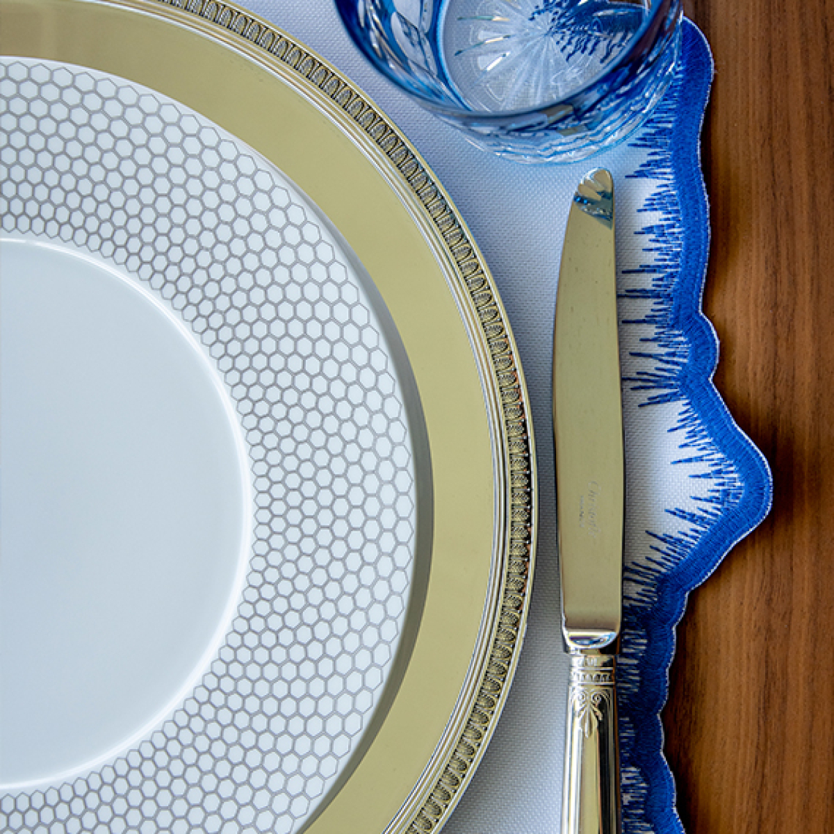 O souplat Malmaison alia requinte e sofisticação ao serviço de mesa. Malmaison, um dos principais modelos da Christofle, é um exemplo do estilo Império, com seu friso de folhas de palmeira e lótus. Essa coleção homenageia o Château de la Malmaison, residência favorita de Napoleão e da imperatriz Josephine. Cada peça é meticulosamente elaborada, refletindo requinte e sofisticação.