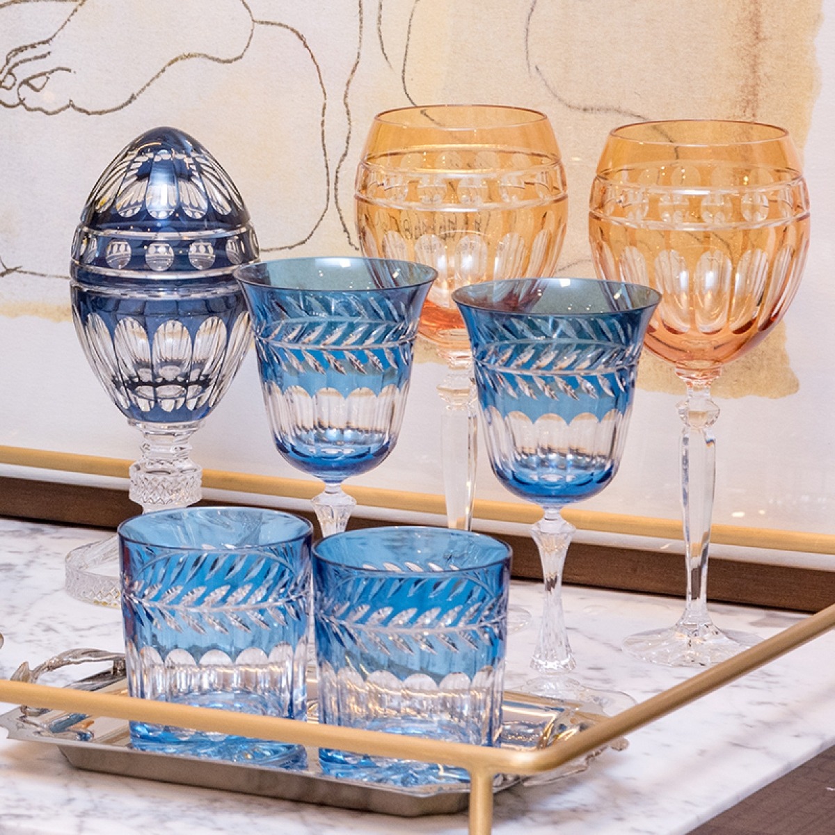 Taça de Água Charlotte Amarelo Gold, lapidada à mão no mais puro cristal polonês. Base com lapidação em forma de estrela. Com excepcional riqueza de detalhes, o trabalho manual mostra todo o brilho e qualidade do cristal. Perfeita para brindar momentos especiais ou completar com requinte as porcelanas mais sofisticadas.