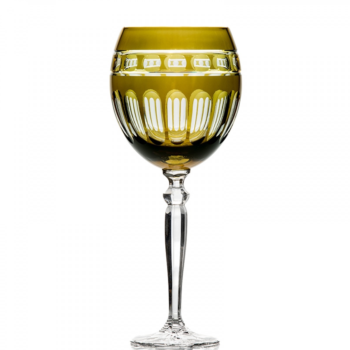 Taça de Água Charlotte Verde Oliva, lapidada à mão no mais puro cristal polonês. Base com lapidação em forma de estrela. Com excepcional riqueza de detalhes, o trabalho manual mostra todo o brilho e qualidade do cristal. Perfeita para brindar momentos especiais ou completar com requinte as porcelanas mais sofisticadas.