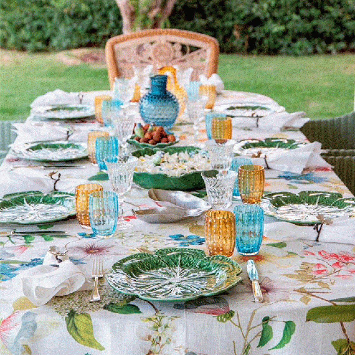 A toalha Ibisco é perfeita para celebrar a vida de maneira sofisticada e chic, mas sempre descontraída, como o jeito de viver e receber Matisse Casa.