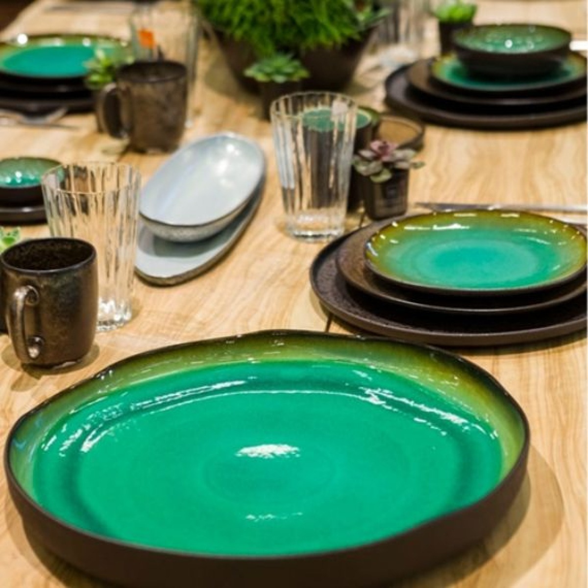 Parte integrante desta coleção de mais de 70 peças, a Casa Alegre traz toda a sua personalidade a Coleção Amazônia, com peças utilitárias em grés, compostas por um serviço de mesa alargado, com uma exuberância própria inspirada pela flora da maior floresta tropical do mundo. As cores das plantas e flores, as texturas e formas exóticas das suas sementes e frutos, são uma fonte de inspiração inesgotável, que encontrou a sua expressão perfeita nas peças com que a Casa Alegre contribui para este projeto único. Devido à decoração por processo manual de cada peça, estas poderão apresentar variações de tonalidade na decoração, contribuindo para o seu caráter único.