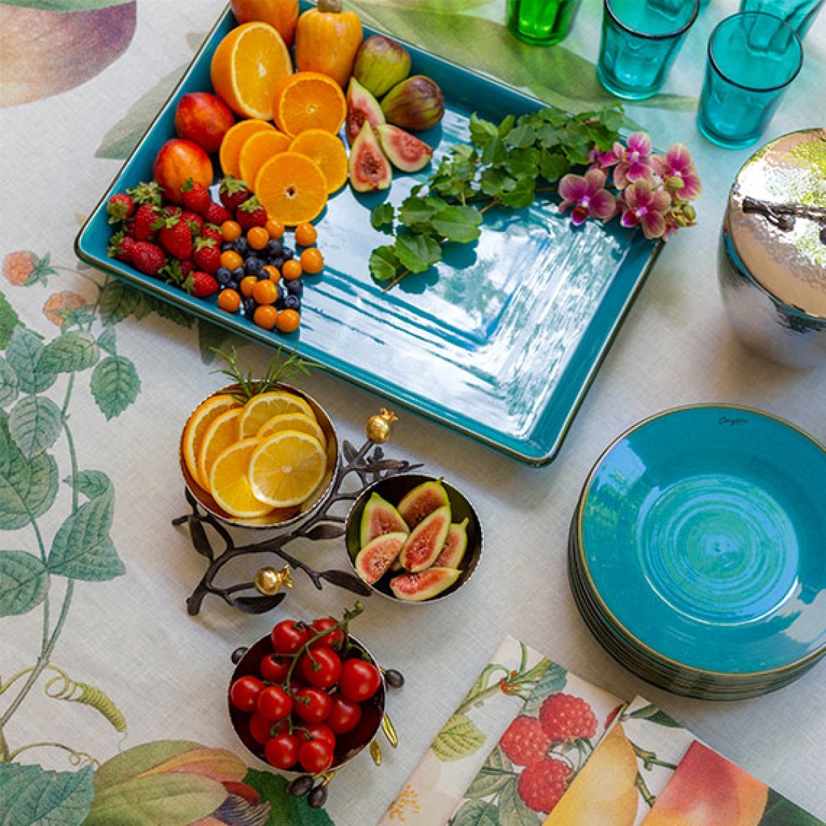 Sardegna tem o estilo artístico da criação de um oleiro. A coleção inclui louças de tamanho generoso e uma grande variedade de utensílios e acessórios que são incrivelmente duráveis, mas moderadamente leves. A paleta de cores - branco, turquesa profundo e a nova cor cinza suave - é inspirada nos tons naturais vistos na costa da Sardenha. Todas as peças são feitas à mão com um esmalte de aparência rústica ao redor da borda.